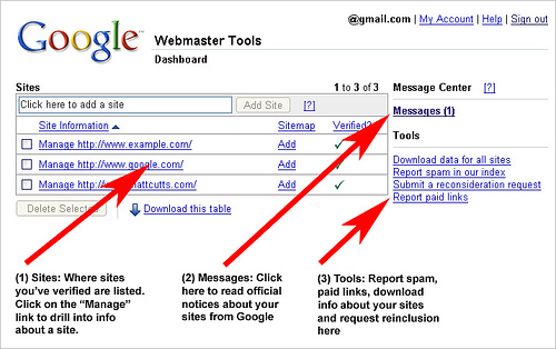 Google webmaster central dashboard